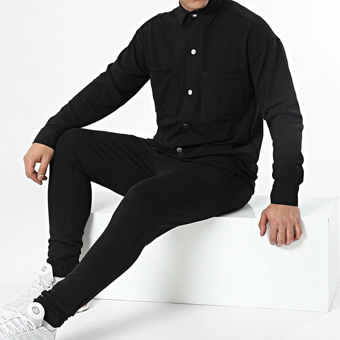 Nouveau 🥰 Ensemble Surchemise Et Pantalon Jogging LL610 Noir de Ikao 💯