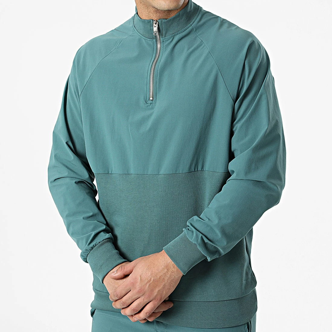 • Ensemble sweat à col zippé et pantalon jogging bi-matière