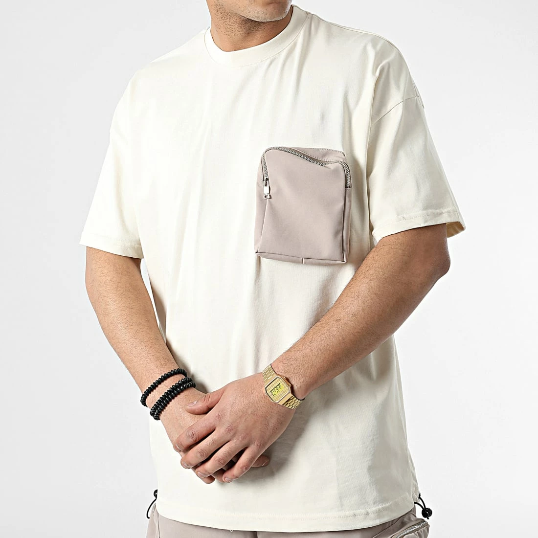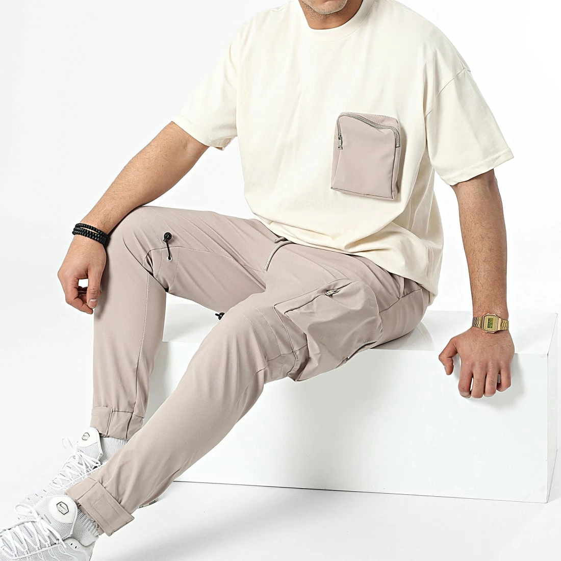 Promo ❤️ Ensemble Tee 👕 Shirt Et Jogger Pant LL601 Beige de Ikao 😍