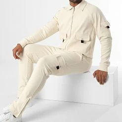 Le moins cher ✨ Ensemble Veste Zippée Et Pantalon Jogging LL717 Beige de Ikao 🧨