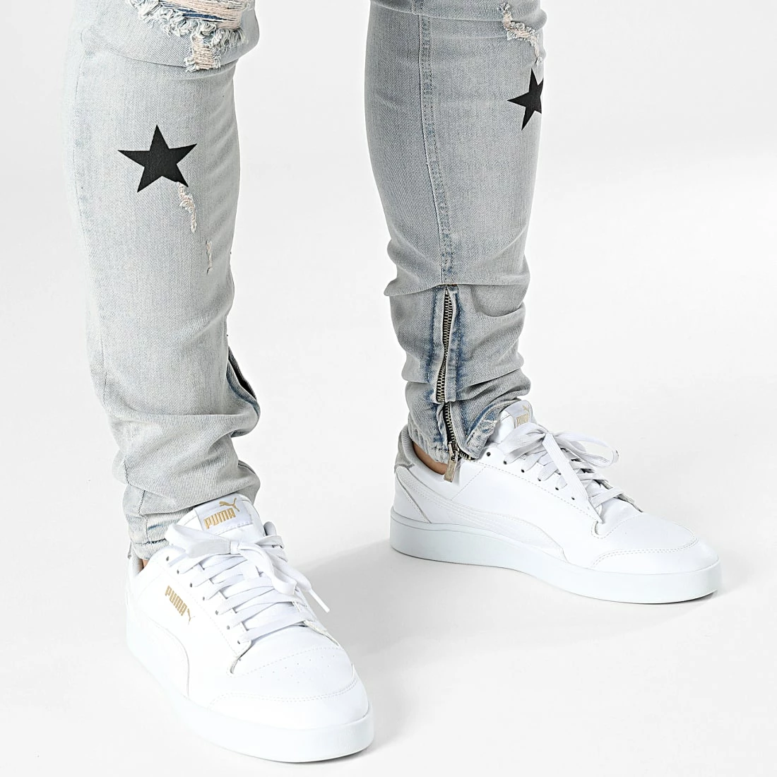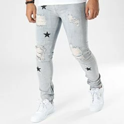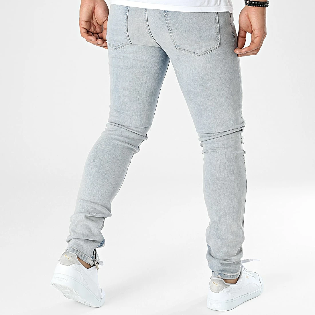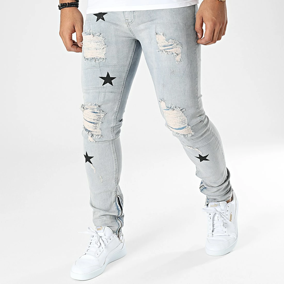 • Jean skinny tendance finition usée et délavée avec rapiéçages