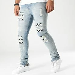 • Finition délavée, tachée et avec rapiéçages à carreaux