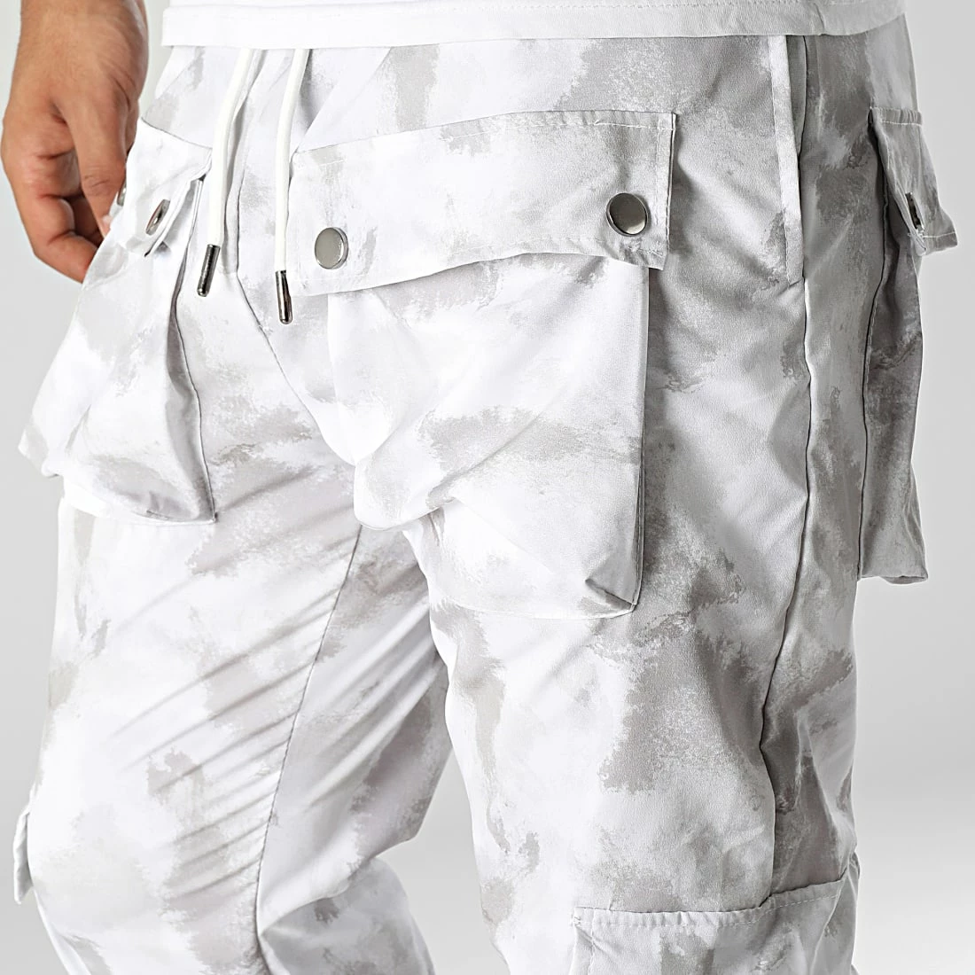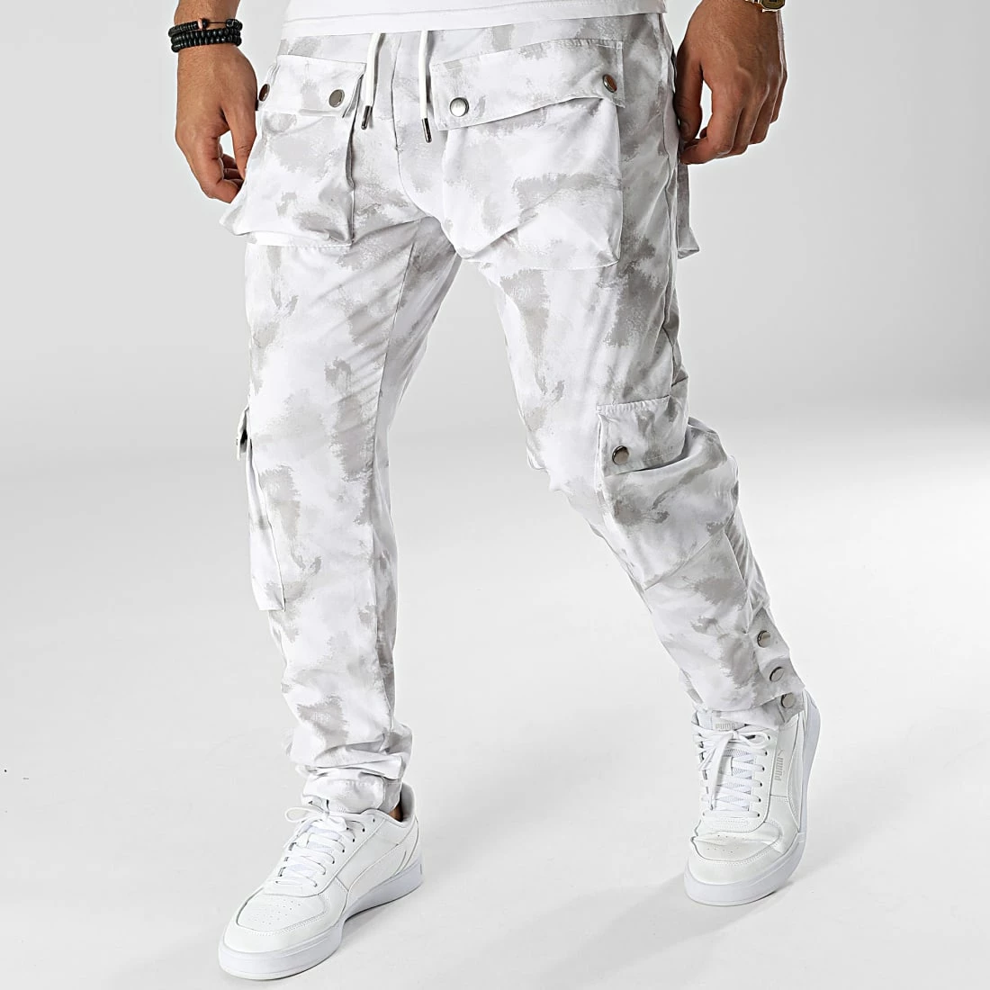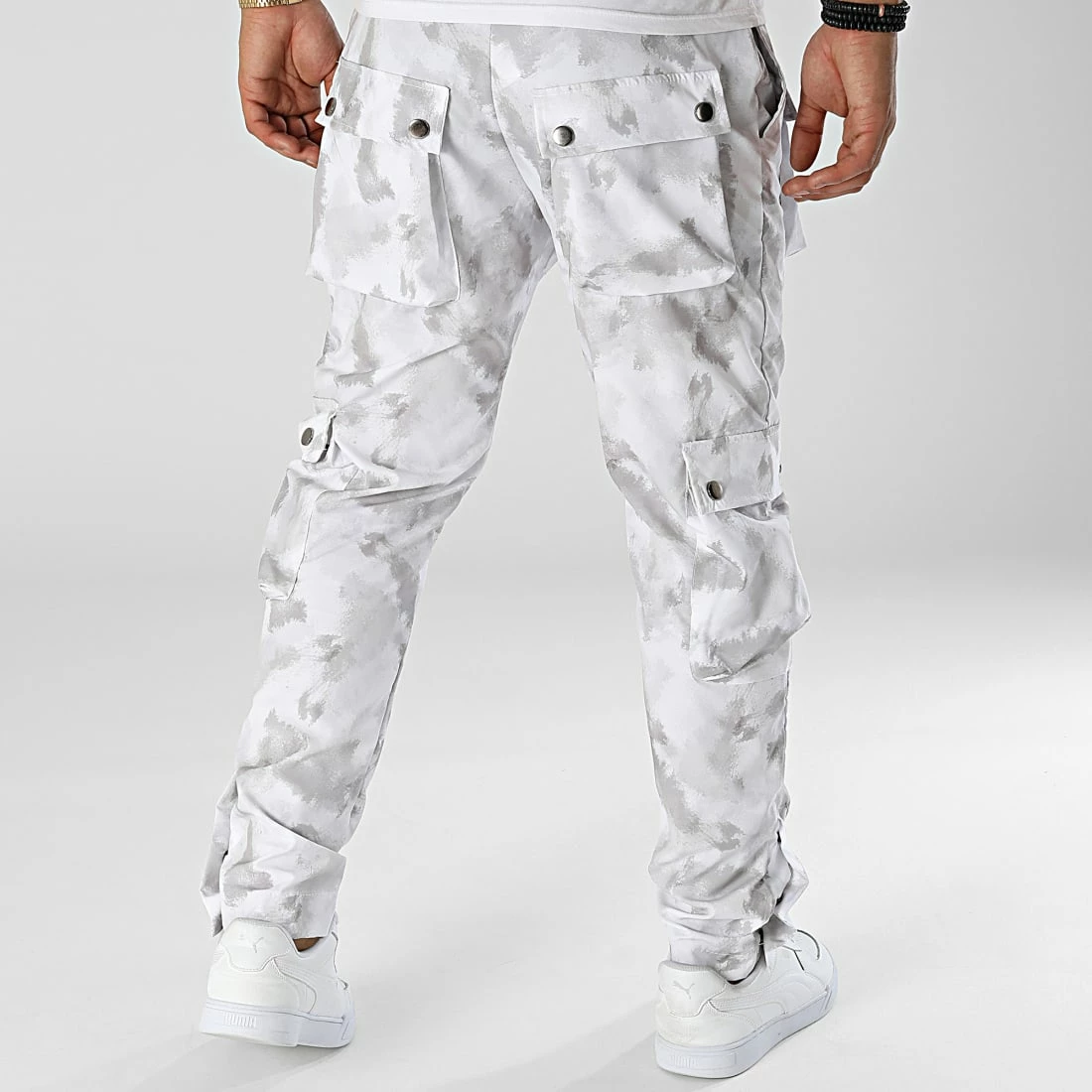 Remise 🎉 Pantalon Cargo LL724 Blanc Gris Clair de Ikao ❤️