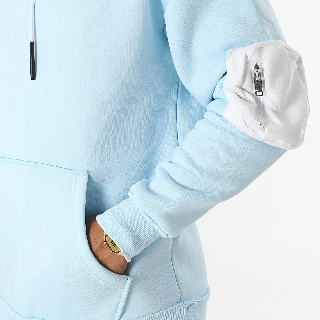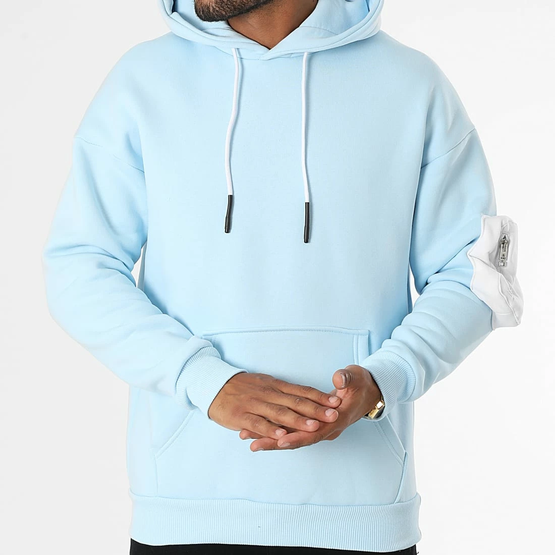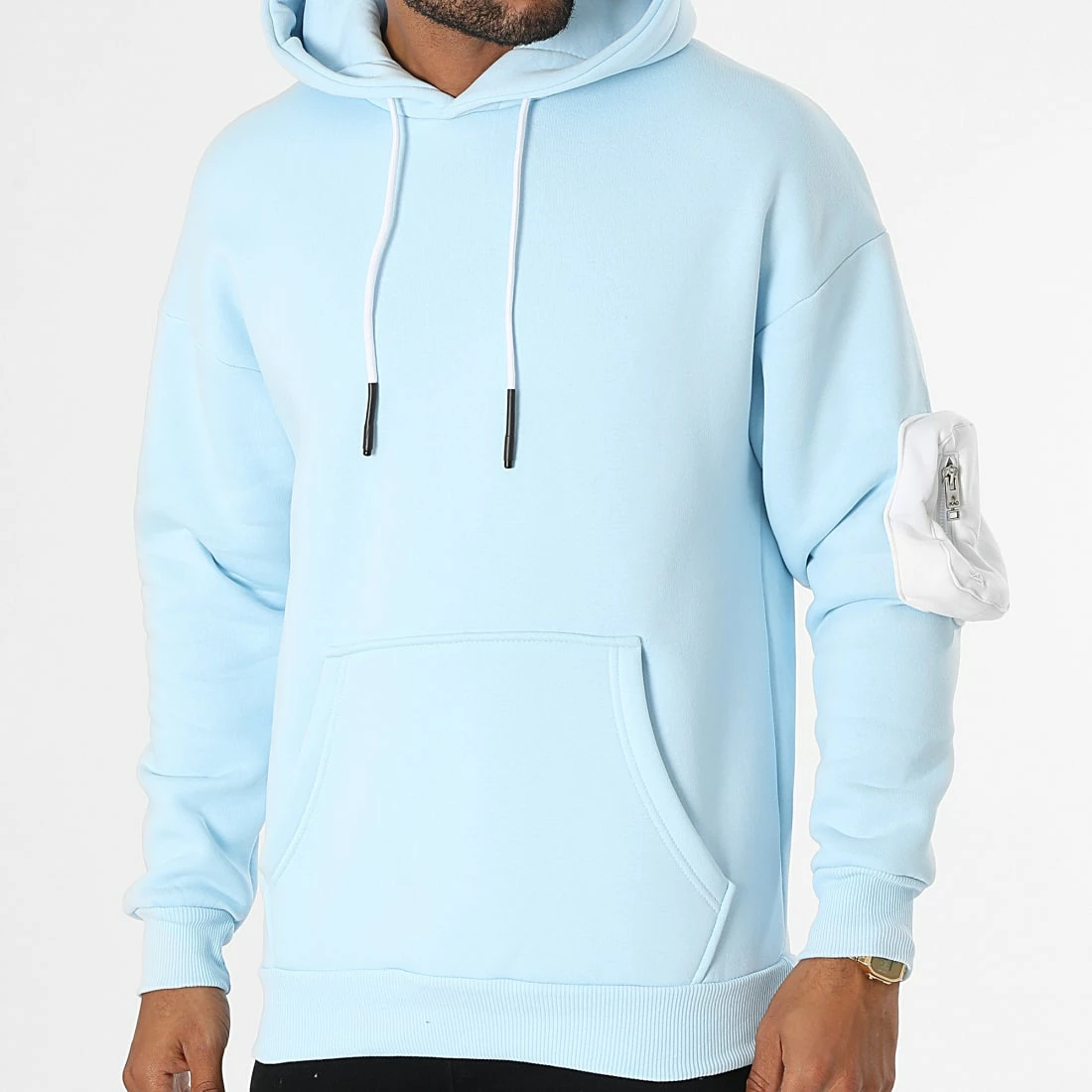 • Sweat capuche uni avec poche zippée contrastante sur la manche gauche