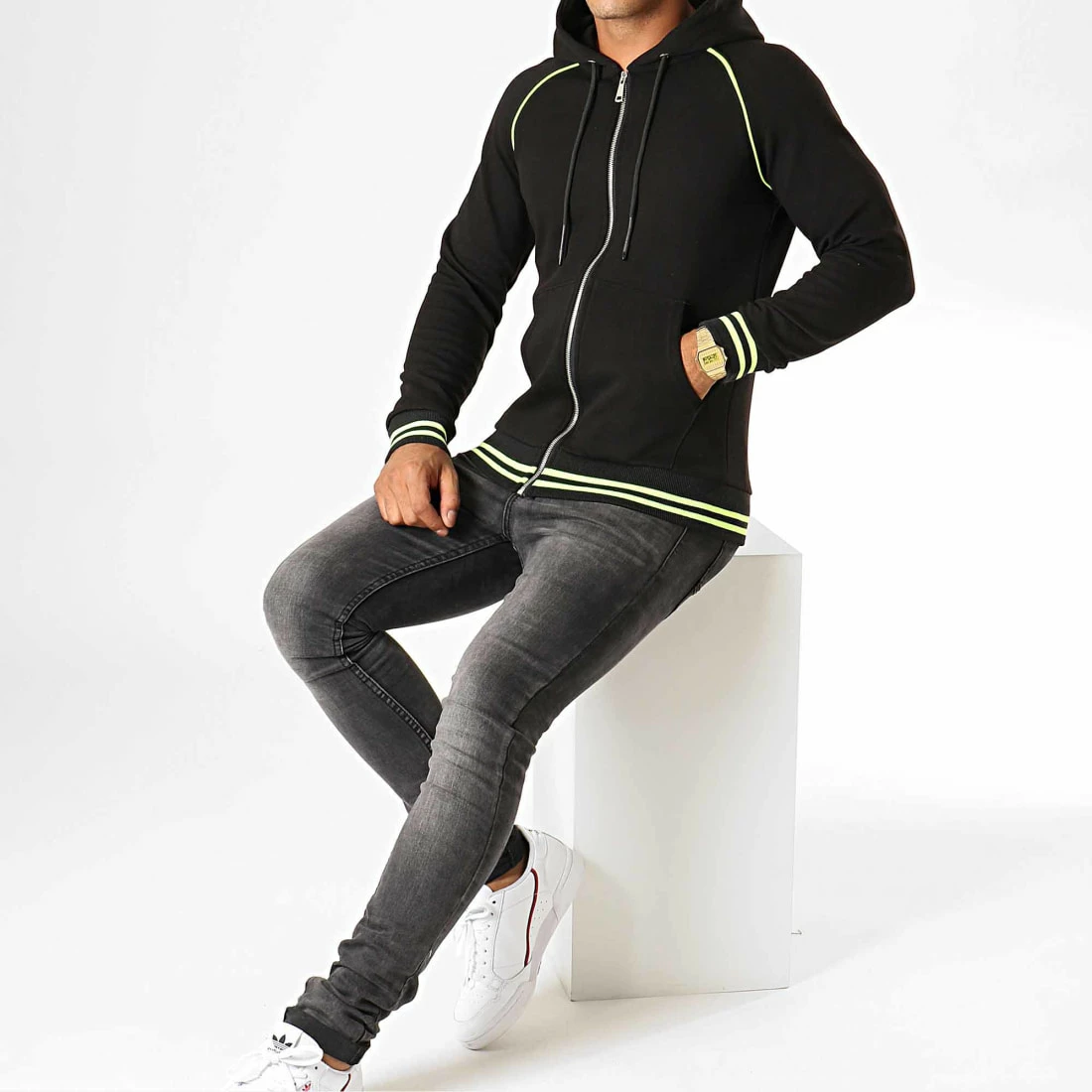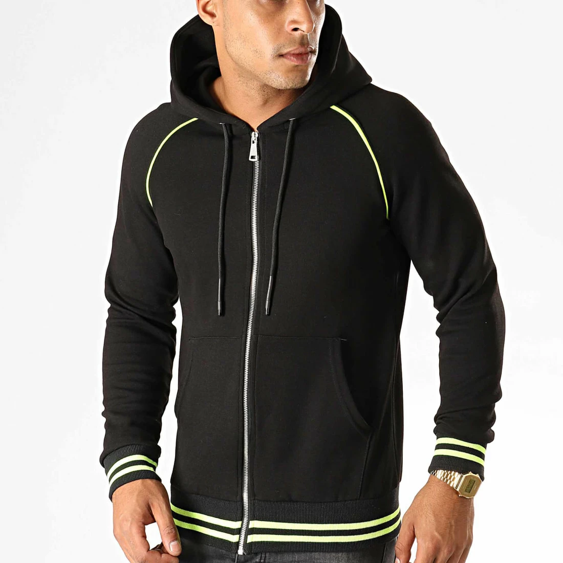 • Sweat zippé bicolore avec capuche