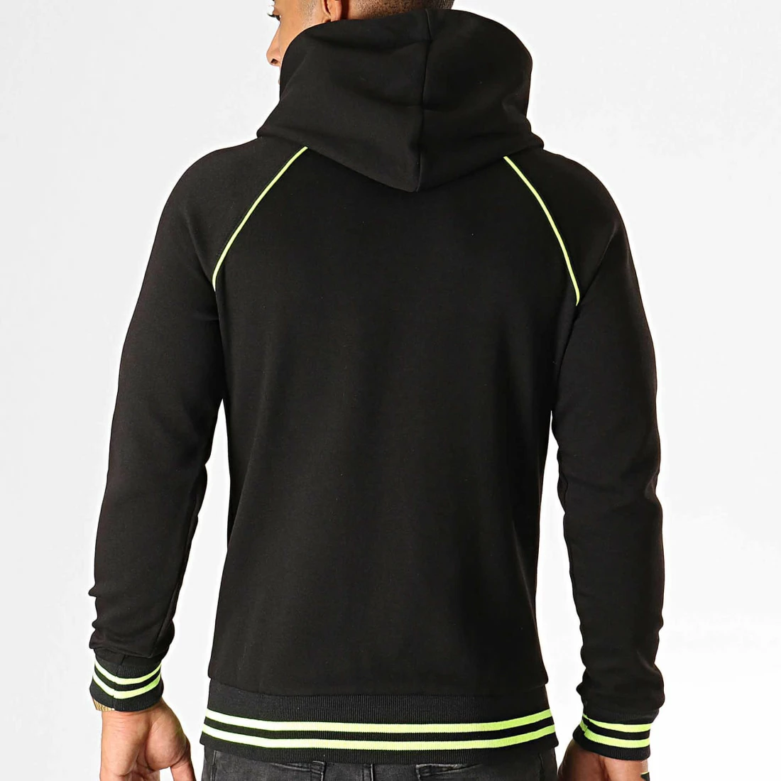 • Liseré fluo cousu autour des épaules