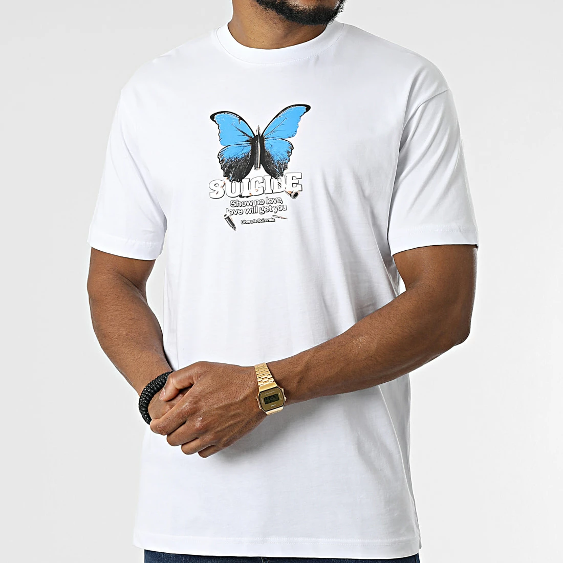 • Tee shirt en coton imprimé visuel à l’avant et au dos